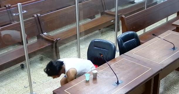 En la audiencia, interrumpida por la abstinencia de la persona procesada, pues se quedaba dormida debido a que tenía que consumir constantemente, se ordenó llevarla al baño para que se lavara la cara y así entender el trámite de la diligencia. No aceptó los cargos por ambos delitos.
