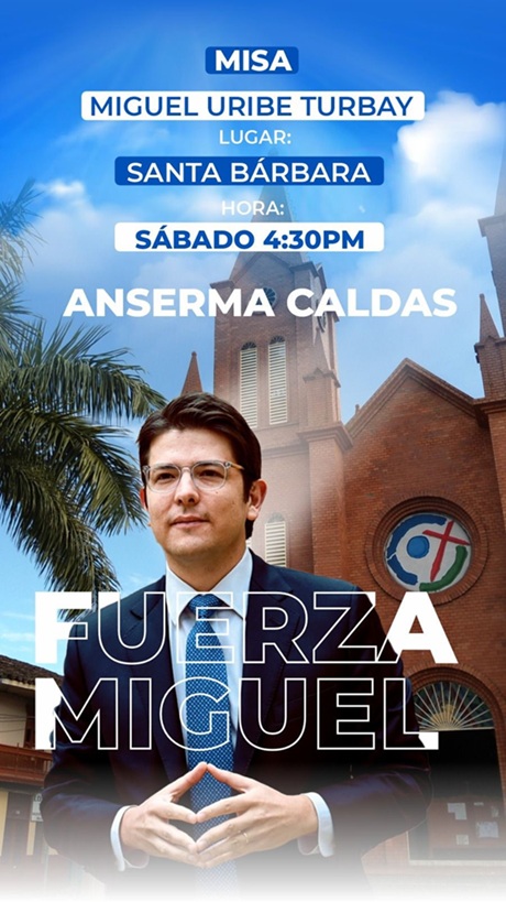 Anserma. En el municipio también recuerdan al senador Miguel Uribe Turbay del Centro Democrático. Varios militantes de este partido, acompañados por la comunidad, participaron de la celebración de una eucaristía en el templo de Santa Bárbara, pidiendo por su total recuperación tras el atentado sicarial del que fue víctima el pasado 7 de junio en Bogotá.