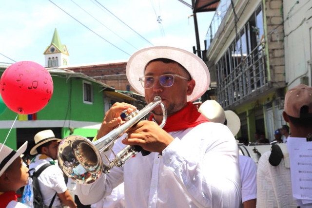 Marquetalia. Durante el desfile del 42 Concurso de Bandas Estudiantiles zonal Alto Oriente, que se realizó en el municipio, Diego Alejandro Alzate Cardona, director de la agrupación del centro poblado El Higuerón en el nivel básico, llamó la atención porque él mismo reforzó a sus pupilos tocando la trompeta al tiempo que dirigía la banda estudiantil y caminaba de para atrás. Esta banda de música está recién conformada, y Alzate Cardona la dirige desde hace cuatro meses, por lo que la preparación y ensayos fueron intensivos para poder presentarse con altura y dignidad en el encuentro musical. Todos recibieron el reconocimiento y felicitaciones de muchas personas que conocen de su esfuerzo artístico.